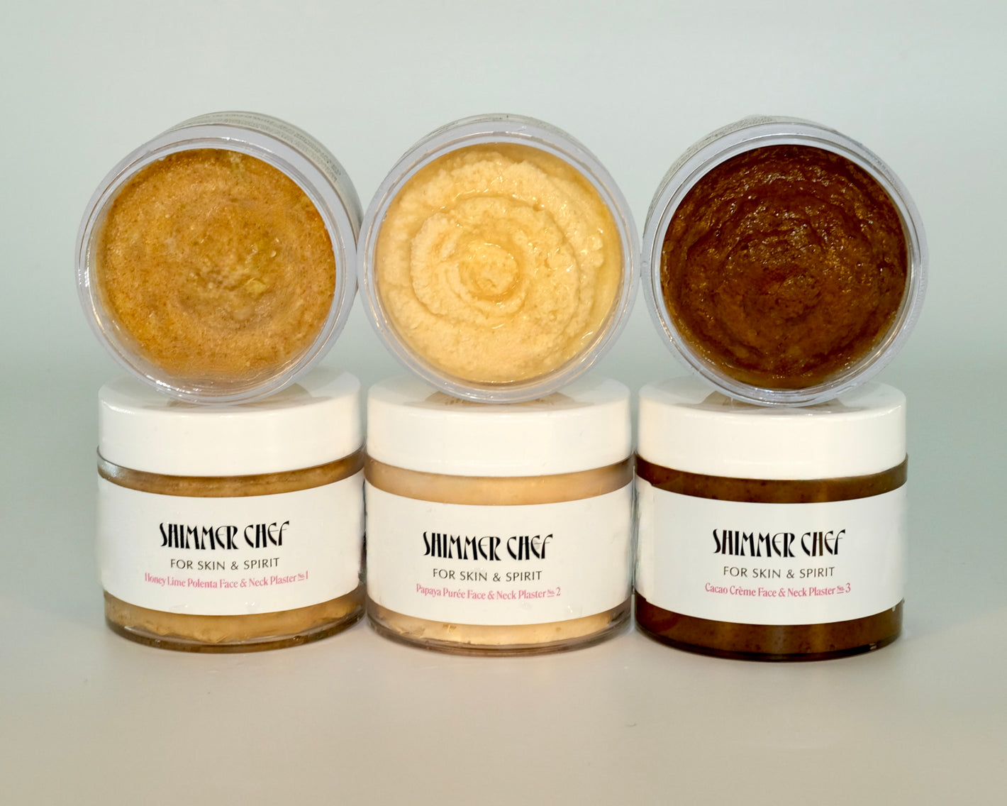 Honey Lime Polenta Plaster, Papaya Purée Plaster, Cacao Crème Plaster