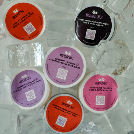 The goal should be to use products, whether they meet the USDA standard for organic or not, that support the skin as the living organ it is. And that’s the approach we’re taking here at Shimmer Chef. As it happens, our raw, living formulations are entirely made with ingredients that are USDA certified organic and we’re very proud to have earned Made Safe certification. But more importantly, they’re designed to support your skin barrier with an appropriate pH and nourishing ingredients that actively feed your microbiome. We combine fresh, organic superfoods and botanicals with a proprietary Vitamin C fermentation process to create the microbial magic that powers our plasters and balms. It’s a less-is-more approach—we have a limited collection with a very big reach. That’s because our fermented plasters and balms are wildly versatile. They’re designed to support your skin’s ecosystem, which means they’re suitable and beneficial for all kinds of skin types and concerns. Dry, oil, sensitive, mature? Honestly, all skin types benefit from products that support their barrier.