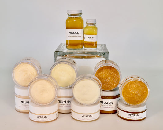 Fresh, fermented, and Perfectly Cold-Preserved creations designed to transform skin, revitalize hair and scalp, and uplift spirit, culminating in The Shimmer Effect.